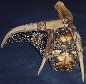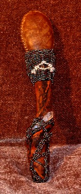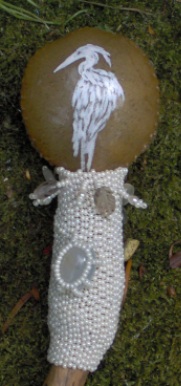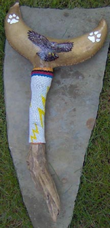 Bekki journeys to her allies for guidance on what she is to make, so every item is unique. Even people with no artistic experience have taken this class and produced exceptionally fine tools with which to enhance their shamanic practice. Participants are encouraged to bring materials such as beads, feathers, and so on with which to work, and there is a fine local bead store which we visit when we teach the class in the Athens, OH area. We usually also bring some supplies with us. Bekki teaches peyote stitch and brick stitch beadwork for those who want to use them for decoration. If you have signed up for one of these classes you are encouraged you to contact Bekki for guidance on what to bring, and to discuss potential projects.